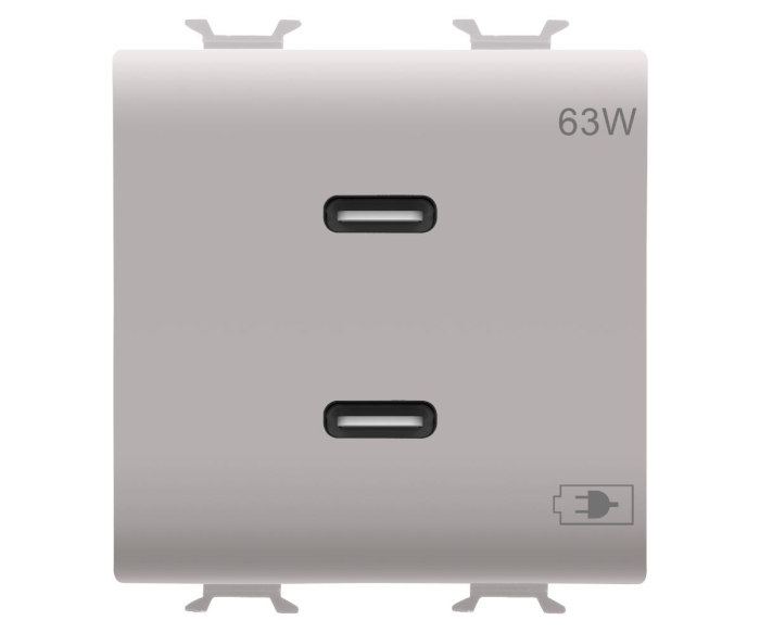 Priza USB tip C dubla 2M PD 63W Gewiss Chorus bej satinat MAT GW13417
