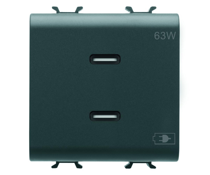 Priza USB tip C dubla 2M PD 63W Gewiss Chorus negru