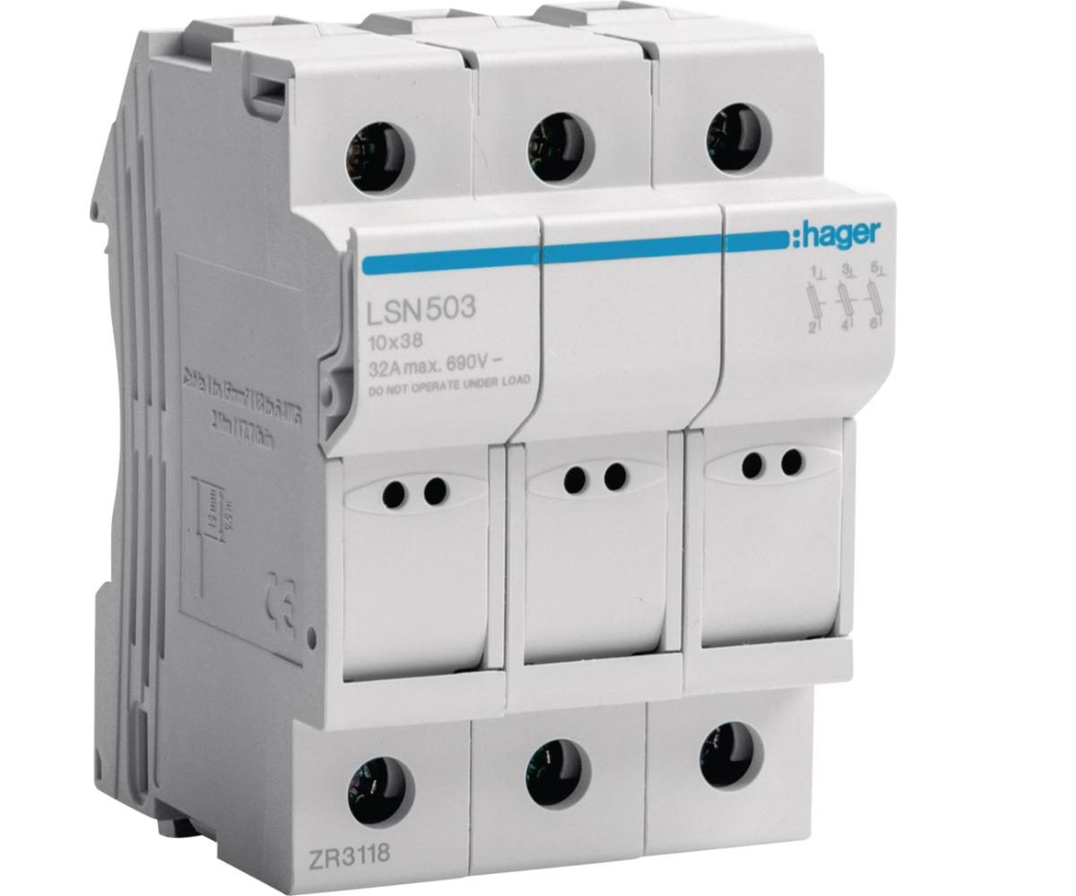 Hager Separator cu fuzibil 3P 32A 10X38mm Hager LSN503